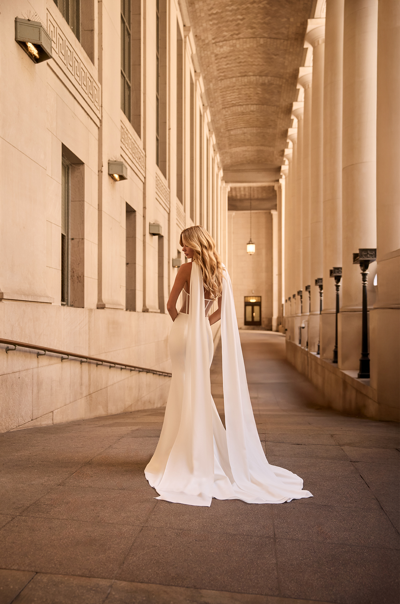 M2578 wedding dress from Mikaella Bridal is now in store at Aibheil of Adare Mikaella wedding gowns are renowned for their stunning simplicity, where timeless elegance is the key. Mikaella design focuses on clean lines, high quality fabrics and flattering silhouettes, emphasising the bride's natural beauty and confidence. M2578 has an amazing asymmetric draped Crêpe bodice with straight across neckline. The back features a natural Italian tulle back bodice with exposed boning. The flattering crêpe band at waist sits atop a chic crêpe fit and flare skirt. To finish, there are fabric covered buttons down the centre back to the waist. Our sample is a Canadian size 8, with a guide waist measurement of 27"